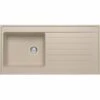 Evier à encastrer Centro Fragranit+ CNG 611-XL Franke 913850. 1 cuve à fleur de plan ou à encastrer : le Fragranit+ est composé à 80% de sable de silice et de 20% de résine composite. Cela le transforme en un matériau particulièrement polyvalent et gratifiant : il permet de réaliser à la fois des coins et bordures impressionnants et de détails fonctionnelles et optiques ravissantes. Fragranit+ le quatrième matériau le plus dur après le diamant, le rubis et le topaze. Il est résistant contre les fissures et l’abrasion et insensible aux acides utilisés dans la cuisine, aux rayures, au froid et à la chaleur inférieur à 280 °. Sa finition lisse procure au matériau un toucher agréable et se nettoie aisément. Vidage Gain de place comprenant bonde manuelle Ø 90 inox et siphon.