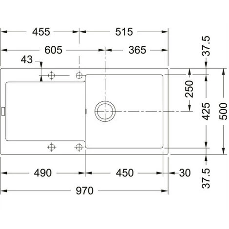 Evier à encastrer Maris MRG611-97 Franke 459433 en fragranit, doté d’1 grande cuve + égouttoir. Vidage Gain de place comprenant bonde manuelle inox Ø 90 et siphon. Evier pré-percé Ø 35 mm pour robinetterie et commande rotative (utilisez la scie cloche livrée avec l’évier). Le Fragranit est un matériau extrêmement résistant créé à partir de l?utilisation de véritable Quartz : composant le plus dur du Granit (une des quatre matières naturelles les plus résistantes) associé à une résine acrylique synthétique très résistante, aux propriétés mécaniques permettant de résister aux chocs.
