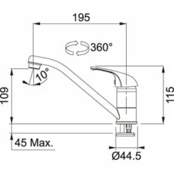Pré-percé Ø 35 mm pour robinetterie et commande rotative (utilisez la scie cloche livrée avec l’évier).
