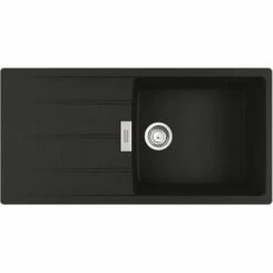Evier à encastrer Centro Fragranit+ CNG 611-XL Franke 913850. 1 cuve à fleur de plan ou à encastrer : le Fragranit+ est composé à 80% de sable de silice et de 20% de résine composite. Cela le transforme en un matériau particulièrement polyvalent et gratifiant : il permet de réaliser à la fois des coins et bordures impressionnants et de détails fonctionnelles et optiques ravissantes. Fragranit+ le quatrième matériau le plus dur après le diamant, le rubis et le topaze. Il est résistant contre les fissures et l’abrasion et insensible aux acides utilisés dans la cuisine, aux rayures, au froid et à la chaleur inférieur à 280 °. Sa finition lisse procure au matériau un toucher agréable et se nettoie aisément. Vidage Gain de place comprenant bonde manuelle Ø 90 inox et siphon.