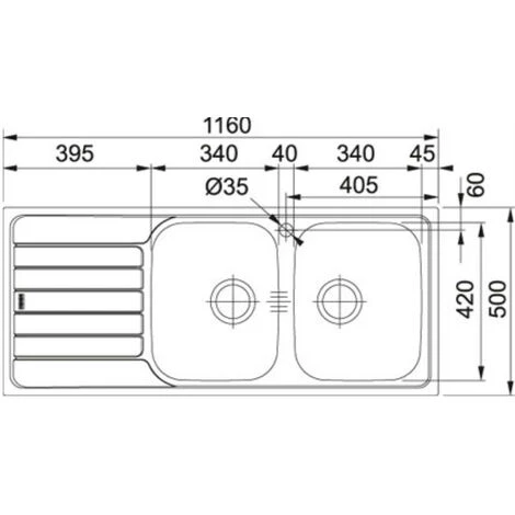 Dimensions de l’Ă©vier (mm) : 1160 x 500.