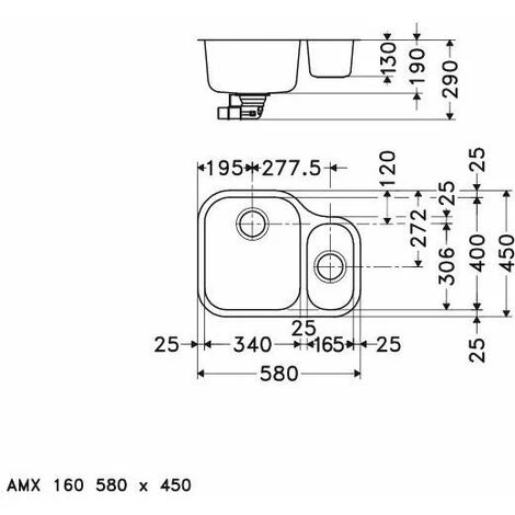 Bassin 340 x 400 x 190 mm / 165 x 306 x 130 mm
