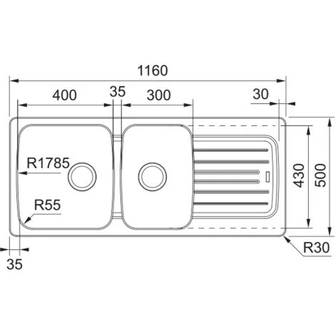 Découpe 1140 x 480 mm / Rayons 20 mm