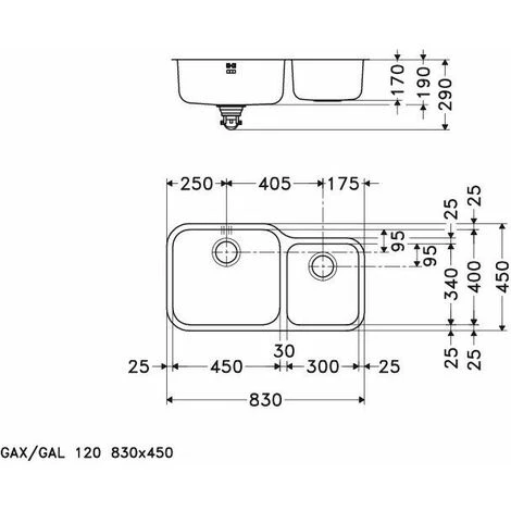 Bassin 450 x 400 x 190 mm / 300 x 340 x 170 mm