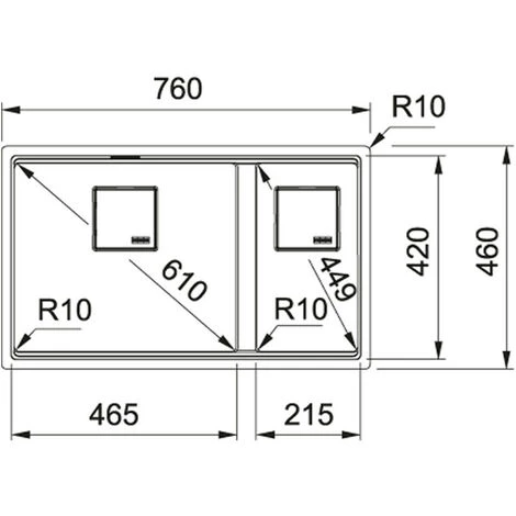 Bassins 4600 x 420 x 200 mm / 210 x 420 x 200 mm