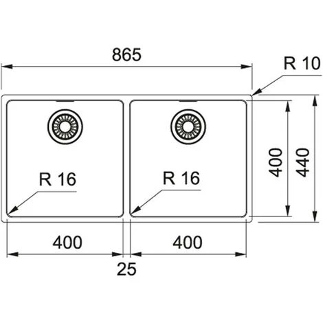 Si vidage auto, bonde automatique – bouton push inox – perçage du plan ∅ 35 mm