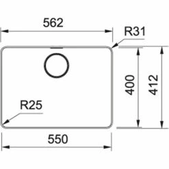Rayons 25mm en haut et 10mm en bas dans les angles de la cuve