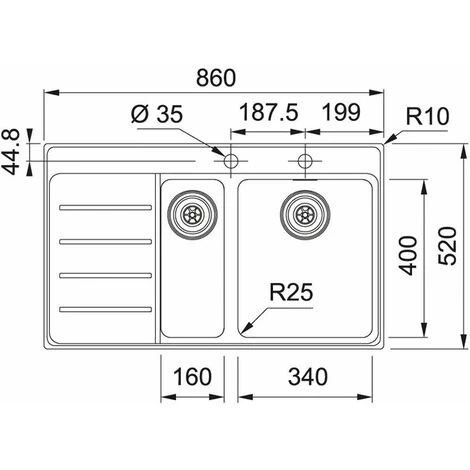Bassin 340 x 400 x 175 mm / 160 x 400 x 130 mm