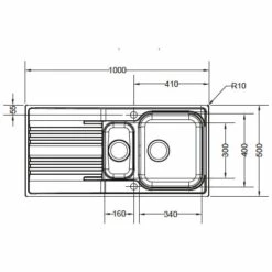 – Eviers percés ø 35 mm pour robinetterie et commande rotative