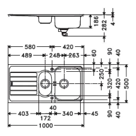 Dimensions 1000 x 500 mm