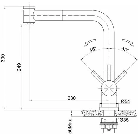Portée du bec: 235 mm; Hauteur du corps: 299 mm;