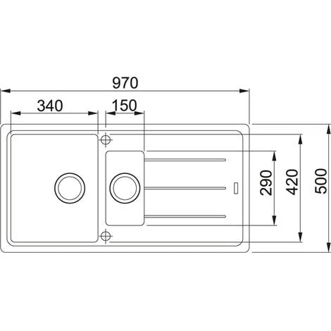 - Dimensions de l’Ă©vier : 97×50 cm