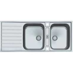 Dimensions : 1160 x 510 mm Découpe : 1147 x 497 mm Bassins : 350 x 435 x 190/320 x 430 x 190 mm Caisson : 800 mm Gabarit de découpe : non A encastrer ou affleurer