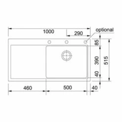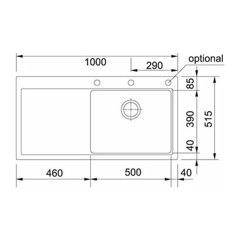 - 1Pré-perçage : ø 25 pour distributeur de savon liquide