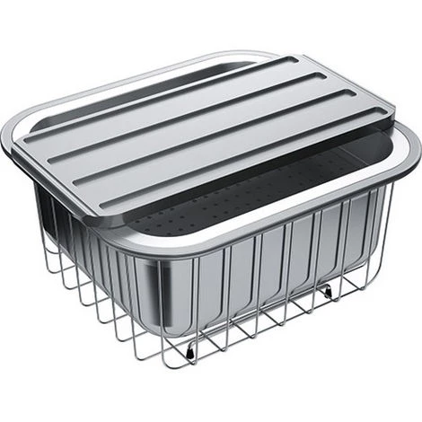 Corbeille Inox/Cuve avec écoulement/Panier égouttoir Inox-PVC