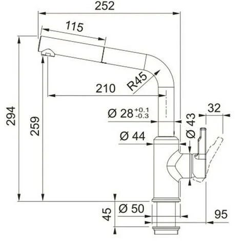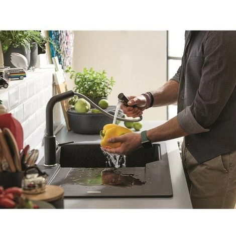 Mitigeur monojet URBAN Franke 745369 avec bec haut à douchette extractible.