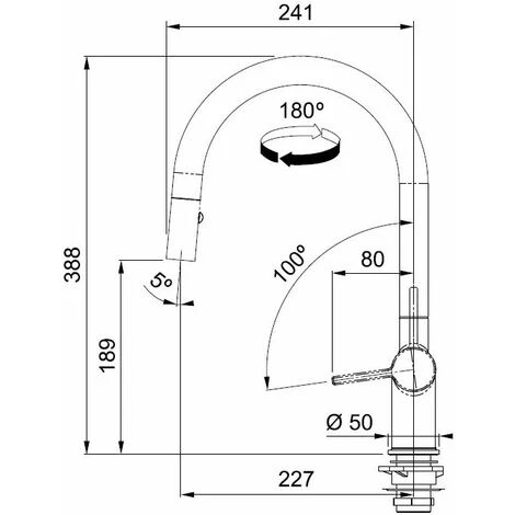 Levier 0°/+100°, idéal pour une installation contre un mur