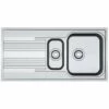 Pack évier + mitigeur Franke 968126 avec planche à découper Bamboo. Evier Centro CNG 611-XLC une cuve à fleur de plan ou à encastrer : le Fragranit+ est composé à 80% de sable de silice et de 20% de résine composite. Cela le transforme en un matériau particulièrement polyvalent et gratifiant : il permet de réaliser à la fois des coins et bordures impressionnants et de détails fonctionnelles et optiques ravissantes. Fragranit+ le quatrième matériau le plus dur après le diamant, le rubis et le topaze. Il est résistant contre les fissures et l’abrasion et insensible aux acides utilisés dans la cuisine, aux rayures, au froid et à la chaleur inférieur à 280 °. Sa finition lisse procure au matériau un toucher agréable et se nettoie aisément. Vidage Gain de place comprenant bonde manuelle Ø 90 inox et siphon. Trop-plein inox design et hygiènique. Pré-percé Ø 35 mm pour robinetterie et commande rotative (utilisez la scie cloche livrée avec l’évier).