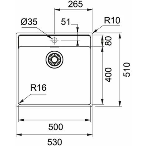 – Eviers percés 35 mm pour robinetterie et commande de vidage